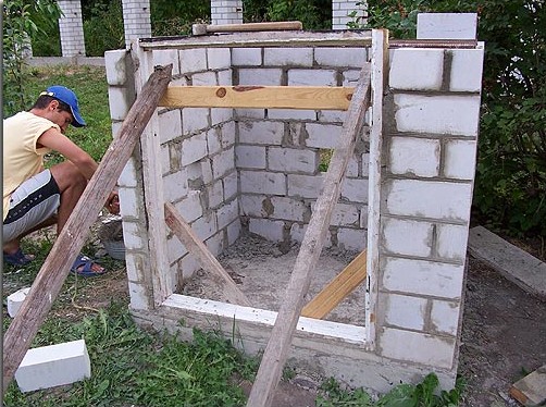 Сказано – сделано, залил небольшой фундамент, выгнал стены (впервые в жизни самостоятельно клал кирпич), соорудил из остатков досок дверь, врезал замок, установил дверь и соорудил крышу.