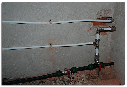 Весь водопровод собран на пластмассовых фитингах итальянского производства, с монтажом никаких трудностей не возникло. Уже в доме, опять таки тройником сделал отвод через шаровой кран и переход ник на металлопластик, все трубы в доме развел металлопластиком. Не стал заморачиваться с клеющимися уголками и тройниками, в доме также все сделал на металлических фиттингах.