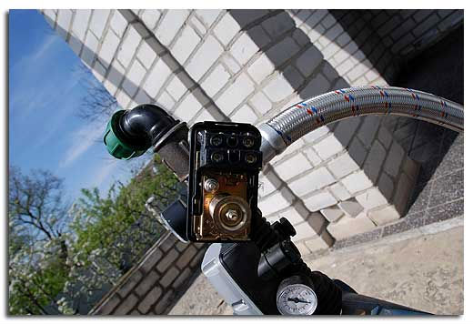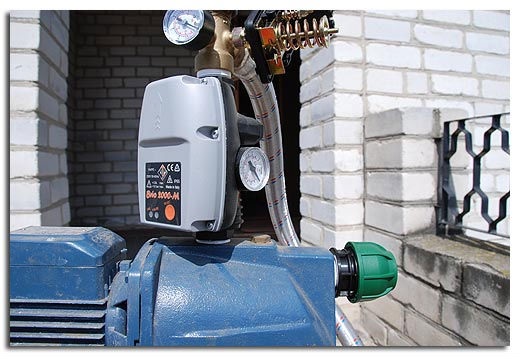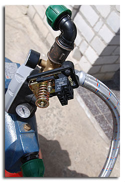 Реле давление выставил на значения 2 – 3.5 атм (заводская установка 1.4-2.8 атм), т.е. при включении насоса и при всех отключенных потребителях воды, он накачивает в водопровод и в гидробак давление 3.5 атм и при достижении этого значения автоматически отключается. При заборе воды в одном из мест и при падении давления менее 2 атм, насос автоматически включается и подает воду, как только кран закрыли, насос опять накачивает давление 3.5 атм и отключается. У защиты сухого хода выставил значение давления 1.8 атм (заводская установка 1.5 атм). Также проверил предварительно установленное еще на заводе давление в гидроаккумуляторе (сбоку у него откручивается пластмассовая крышка и под ней находится автомобильный клапан) — снизил его до 1.5 атм.