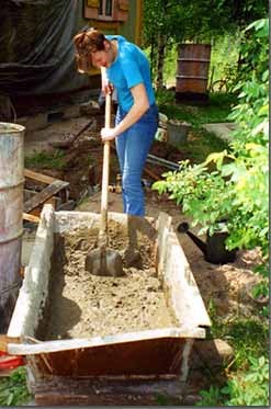 1. Выгреб. Герметичный или фильтруемый. Тут у каждого свои условия. Герметичный — предпочтительнее с точки зрения охраны окружающей среды и т.п. Фильтруемый придется очищать гораздо реже, но отходы неизбежно будут просачиваться в грунт. Объем – не менее 1 куб.м. У меня – 2 куб.м. Понимая, что бетонировать, замешивая раствор в детской ванночке, изрядный геморрой, долго искал альтернативные варианты. Рассматривались: кольца для колодца, пластиковые емкости разного назначения и т.п. В итоге, для меня ничего не подошло. К сожалению, был загнан в жесткие рамки местом расположения туалета. Пришлось бетонировать.