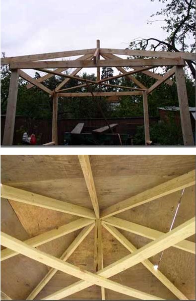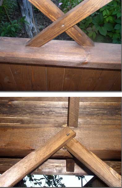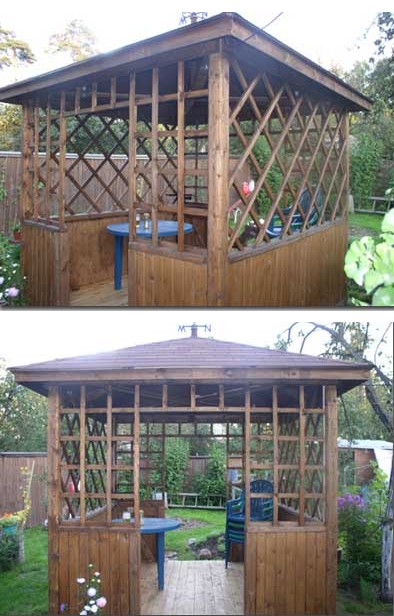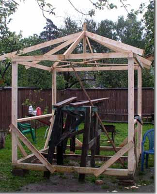 Таким образом, делаем обрешетку с двух сторон беседки.
