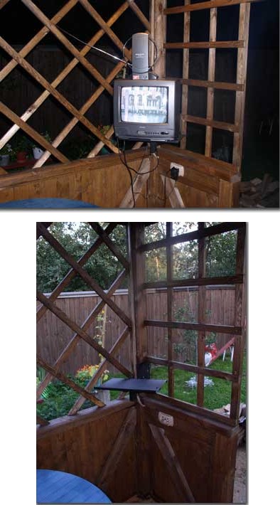 Прикрутил держатель для маленького телевизора. Очень здорово вечером на свежем воздухе посмотреть телевизор за бутылочкой пива с рыбкой.